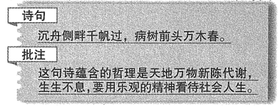 10.悟其理·丰富思想:《礼记》中说:“虽有至道,弗学,不知其善也。”请摘抄下面诗中告诉了我们“至道”的诗句,并将这句诗蕴含的哲理批注在相应位置。(3分)