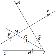 GH的长为半径画弧,两弧在∠BAC的内部相交于点O,画射线AO,交直线EF于点M.已知线段AB=6,∠BAC=60°,则点M到射线AC的距离为 .