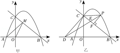 (2)如图甲,点M是直线BC上的一个动点,连接AM,OM,是否存在点M使AM+OM最小,若存在,请求出点M的坐标,若不存在,请说明理由;