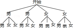 (3)该校准备开展以“劳动美”为主题的教育活动,要从报名的2男2女中随机挑选2人在活动中分享劳动心得,请用树状图或列表法求恰好抽到一名男生和一名女生的概率.