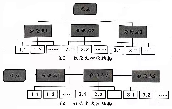 自上而下找结构主要适用于对一个主题或问题进行拆分。先对主题或问题进行结构化拆分(即按照一定维度进行拆分),建立起一个框架,再将已有的信息或解决方案放入到框架中。如,语文老师这样教写议论文:开篇亮出观点,然后将观点分解为几个分论点(分论点之间的关系可以是并列的,也可以是层层递进的),再用论据证明分论点,最后对文章进行总结。这样就形成了一个树状结构或线性结构(也叫流程图),如图3、图4: