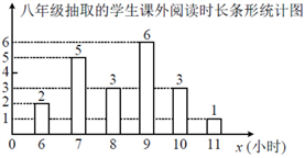 ,记为8;…以此类推),下面分别给出了抽取的学生课外阅读时长的部分信息,