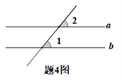 4.如题4图,直线a//b,∠1=40°,则∠2=( )