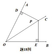 18.如题18图,已知∠AOC=∠BOC,点P在OC上,PD⊥OA,PE⊥OB,垂足分别为D,E.