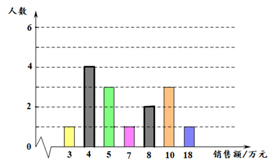 ∴月销售额的众数是4万元;中间的月销售额是5万元;平均月销售额是7万元.