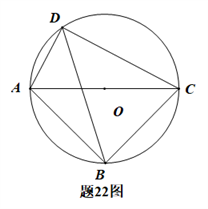 22.如题22图,四边形ABCD内接于⊙O,AC为⊙O的直径,∠ADB=∠CDB.