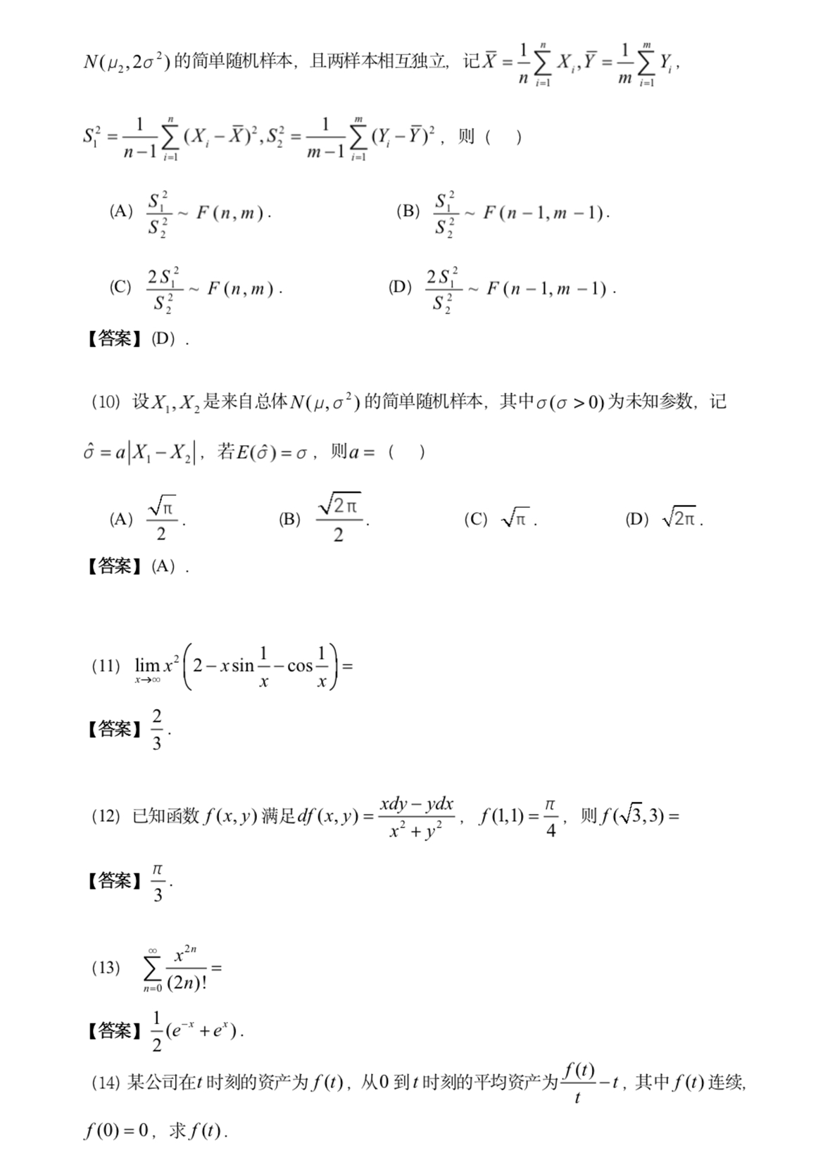 2023年考研数学一试题及答案