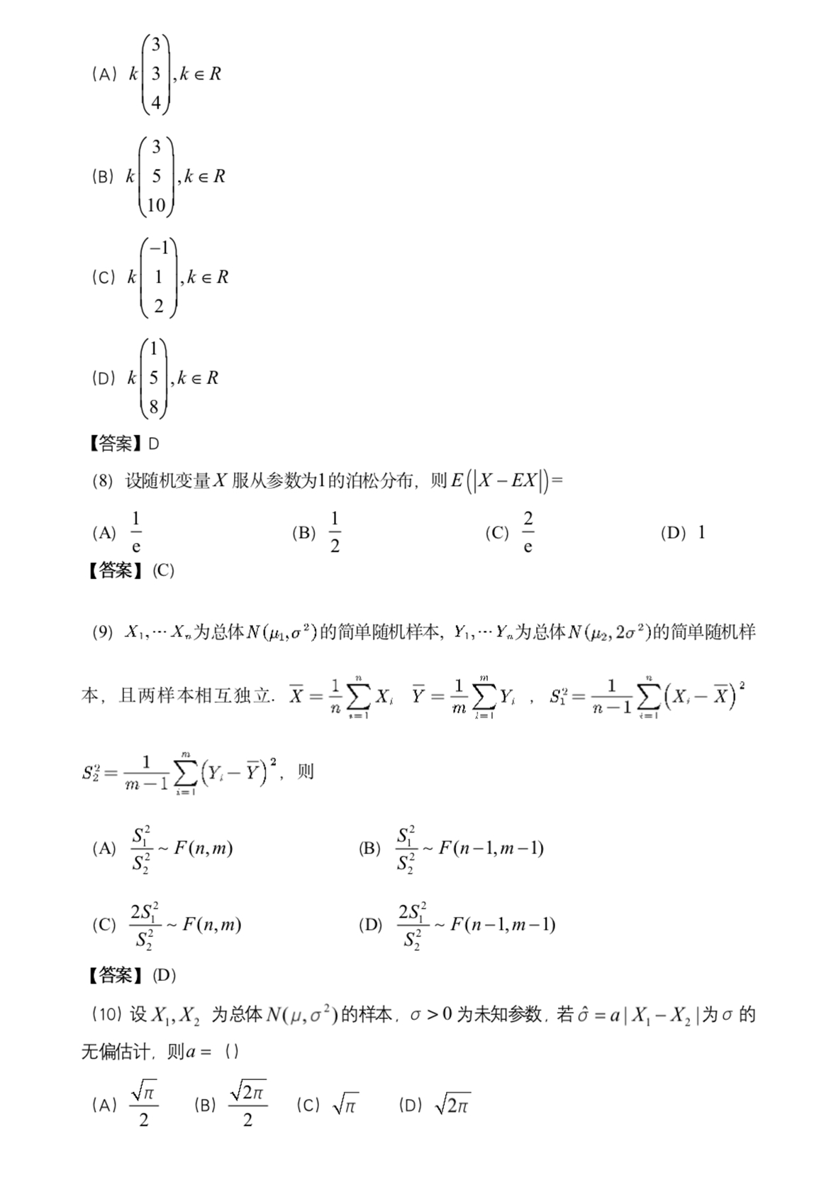 2022年考研数学三试题及答案