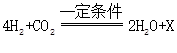 种类、数目不变,由化学方程式可知,反应前有8个氢原子、1个碳原子、2个氧原子,反应后有4个氢原子、2个氧原子,缺少4个氢原子、1个碳原子,因此X的化学式为CH4;