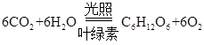 植树造林是一种吸收二氧化碳的重要方法,二氧化碳和水在光照和叶绿素的作用下反应生成葡萄糖和氧气,反应的化学方程式为: