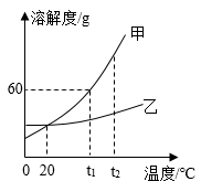 (2)t1℃时,将15g甲放入在20g水中,充分溶解后所得溶液溶质质量分数为__________。