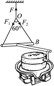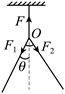静止时,连接AB的轻绳处于绷紧状态。O点是三根轻绳的结点,F、F1和F2分别表示三根绳的拉力大小,F1=F2且
