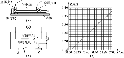 (4)图11(c)是根据部分实验数据描绘的Rx—L图线。将该导电绳两端固定在某种机械臂上,当机械臂弯曲后,测得导电绳的电阻Rx为1.33kΩ,则由图线可读出导电绳拉伸后的长度为__________cm,即为机械臂弯曲后的长度。