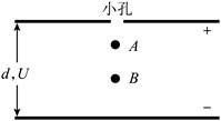 。此时给两极板加上电压U(上极板接正极),A继续以原速度下落,B经过一段时间后向上匀速运动。B在匀速运动时间t内上升了距离