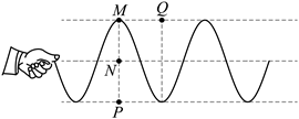 17. 如图所示,某同学握住软绳的一端周期性上下抖动,在绳上激发了一列简谐波。从图示时刻开始计时,经过半个周期,绳上M处的质点将运动至__________(选填“N”“P”或“Q”)处。加快抖动,波的频率增大,波速__________(选填“增大”“减小”或“不变”)。