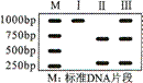 突变型1应为杂合子,由C突变为C1产生了一个限制酶酶切位点。Ⅰ应为C酶切、电泳结果,II应为C1酶切、电泳结果,从突变型1叶片细胞中获取控制叶片颜色的基因片段,用限制酶处理后进行电泳,其结果为图中Ⅲ。