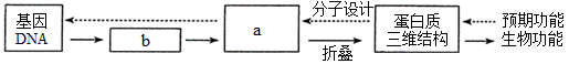 (1)蛋白质工程流程如图所示,物质a是_______,物质b是_______。在生产过程中,物质b可能不同,合成的蛋白质空间构象却相同,原因是_______________________。