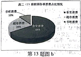 (2)为直观反映该月高二(7)班校园各项消费的占比情况,根据图a中的数据制作的图表如第13题图b所示。创建该图表的数据区域为D3:F3,_______。