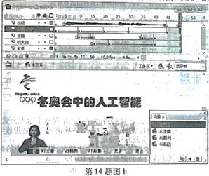 14.小王创作主题为“冬奥会中的人工智能”的多媒体作品。首先使用Photoshop软件处理图像,然后使用Flash软件制作动画作品。请回答下列问题: