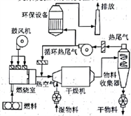7.如图所示是木屑等物料的干燥工艺流程图。鼓风机将燃烧室产生的热空气送入干燥机干燥湿物料,物料收集器将干物料与热尾气分离,并除去热尾气中的水分。热尾气一部分循环利用,剩余部分经环保设备处理后排放。下列关于该流程的说法中,不合理的是( )