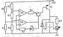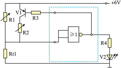A.R6断路且温度低于下限时,V5发光 B.R3短路时,加热器不会加热