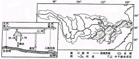 材料二 下图为长江流域水循环简图及长江流域示意图。