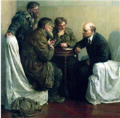 16.右图为弗拉基米尔·塞尔罗夫1950年创作的油画《农民代表访问列宁》:列宁正专注地听取和记录三位衣着破烂的农民的倾诉。农民倾诉的主题,最有可能的是