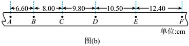 (1)已知打出图(b)中相邻两个计数点的时间间隔均为0.1s.以打出A点时小车位置为初始位置,将打出B、C、D、E、F各点时小车的位移