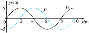 16. 分别沿x轴正向和负向传播的两列简谐横波P、Q的振动方向相同振幅均为5cm,波长均为8m,波速均为4m/s。