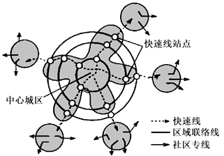 (3)说明沿快速交通线两侧进行高密度开发对城市发展的作用。
