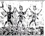 重庆璧山议代一号石棺“巴人舞、杂状”。一群人在跳舞,其中三人手挽手在轻快舒展地跳着舞。 | 唐朝戴帷帽骑马仕女俑。被认为是展示了唐代女子骑马休闲出行的“标配”装束。 | 宋代蹴鞠铜镜。铜镜背面的纹饰,呈现了青年男女在花园里踢球的情景。 |