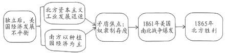 14.右边是小勇同学学习美国南北战争后制作的思维导图,从中可以得出南北战争的本质是( )
