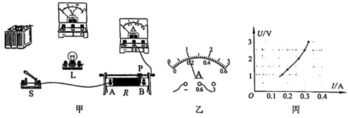 ,某时刻电流表示数如图乙为______A,观察灯泡亮度并记录电表示数:继续缓慢移动滑片