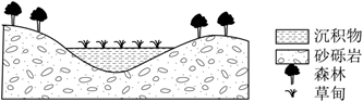 下图为某区域的典型剖面示意图,该区域的山坡受流水侵蚀,谷地持续接受沉积。山坡多生长森林,谷地中草甸广泛发育,据此完成下面小题。