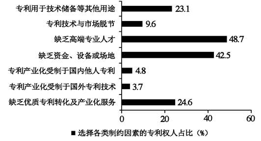 14.2022年,国家知识产权局对全国20余个省(区、市)1万多个专利权人开展专利产业化过程中的主要制约因素专题调研。调研结果见图4。