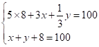 15. 我国古代数学名著《张丘建算经》中有这样一题:一只公鸡值5钱,一只母鸡值3钱,3只小鸡值1钱,现花