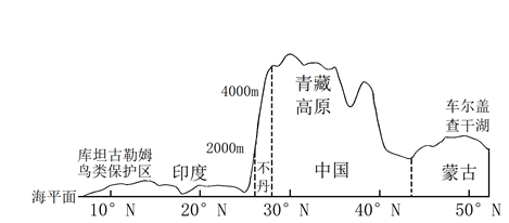 11. 斑头雁每年都要在印度最南端的库坦古勒姆鸟类保护区与蒙古的车尔盖查干湖之间迁徙。下图为斑头雁迁徙的高度曲线,由此可知斑头雁( )