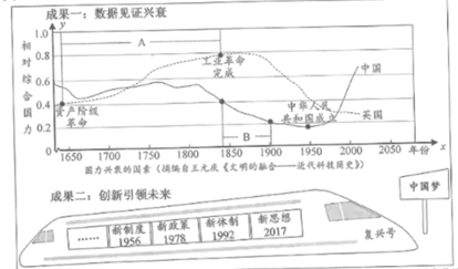 (2)当数轴中x=2050时,我国将实现中国梦。结合成果二,运用所学知识简述中国共产党建国以来是如何为实现中国梦而奋斗的。