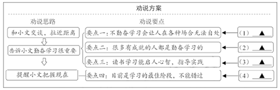 8. 为了劝说小文同学勤奋学习,同学们设计了一份劝说方案,并从《颜氏家训》中搜集了下列材料,作为四个劝说要点的佐证。请将佐证材料分别填入劝说方案中相应的横线处(填选项)。