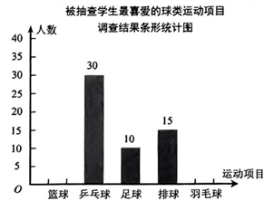 (2)被抽查的100人中最喜爱羽毛球的人数为: