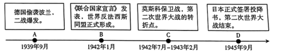 20. 时空坐标法是学习历史常用的方法,下图是小明同学绘制的第二次世界大战时空坐标图,图中时间与事件对应有误的是( )