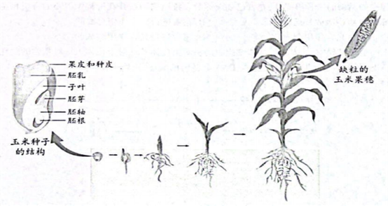 11.(5分)某校同学在学校“种植基地”里种植玉米,并进行观察和研究。下图是玉米的生长发育过程及部分结构示意图。