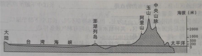 北回归线穿过台湾省中南部,读“台湾省沿北回归线地形剖面示意图”,完成28~29题。