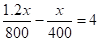 11. 阅读,正如一束阳光.孩子们无论在哪儿,都可以感受到阳光的照耀,都可以通过阅读触及更广阔的世界.某区教育体育局向全区中小学生推出“童心读书会”的分享活动.甲、乙两同学分别从距离活动地点800米和400米的两地同时出发,参加分享活动.甲同学的速度是乙同学的速度的1.2倍,乙同学比甲同学提前4分钟到达活动地点.若设乙同学的速度是