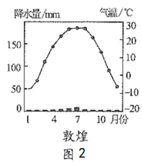 材料二图1为某地区部分地理要素分布图,图2为敦煌气候图