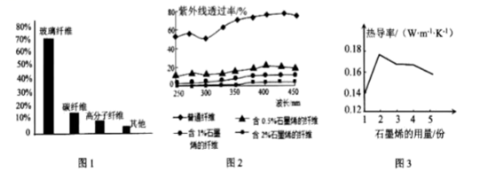 B.由图2可知,同等情况下普通纤维的紫外线透过率高于加了石墨烯的紫外线透过率,错误;