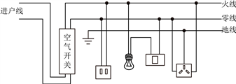 A. 空气开关 B. 双孔插座 C. 带开关的灯泡 D. 三孔插座