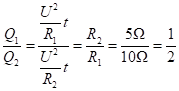 D. 将两电阻并联接入电路,通电1分钟,电流通过R1产生的热量与电流通过R2产生的热量之比为1∶2
