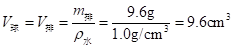 m排=mF-m水=35.6g-26.0g=9.6g