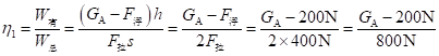 因为η1∶η2=15∶16,所以GA=800N。A未露出水面前,由